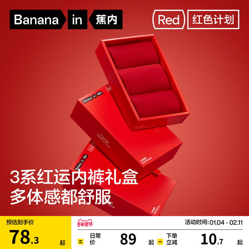 3 pieces|Banana silver leather 308Pro women's underwear non-trace invisible non-clamping buttocks pure cotton breathable crotch briefs red
