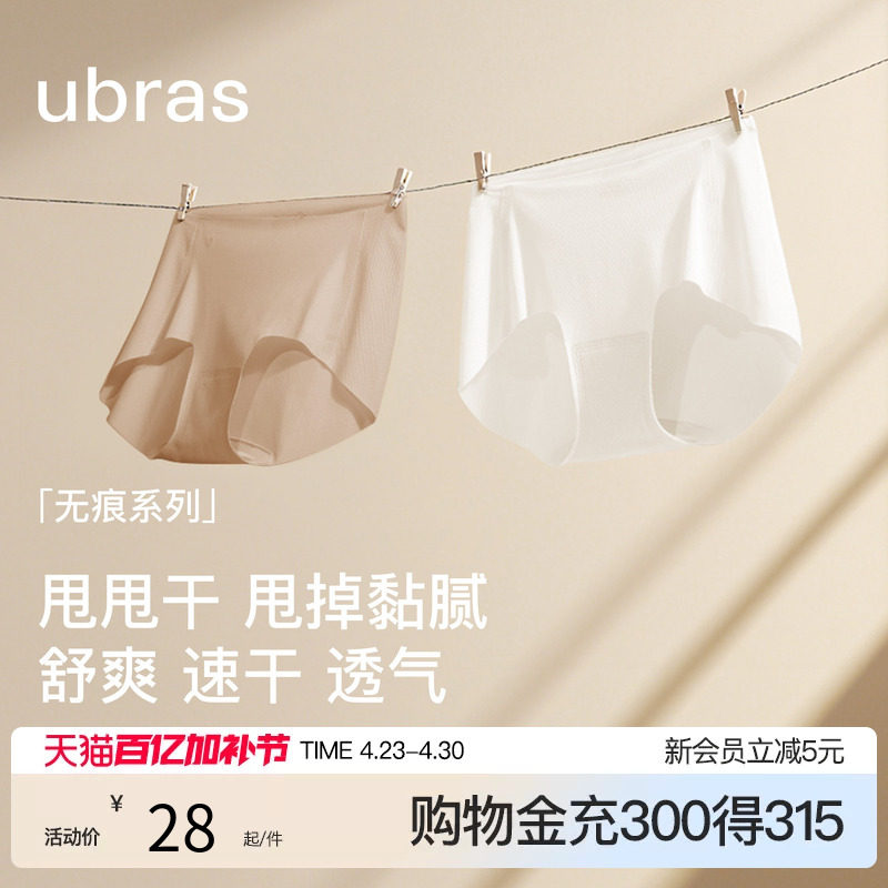 ubras seamless flip-dry panties women's thin invisible mid-rise ice silk extended crotch cooling triangle shorts