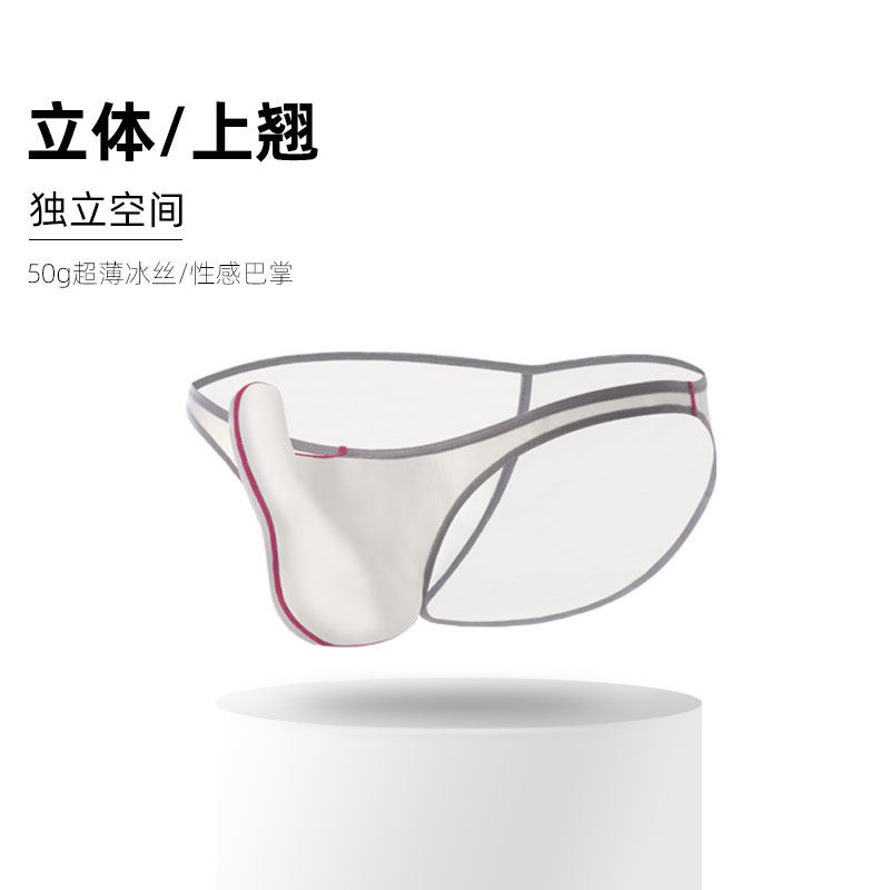 Two pieces of men's underwear transparent solid color non-marking breathable low-rise briefs hollow ring belt sexy personality