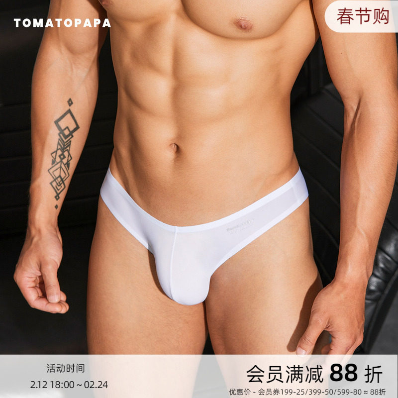 TOMATOPAPA men's triangle briefs semi-hip thin sexy non-marking soft high elasticity cool thin waist underwear
