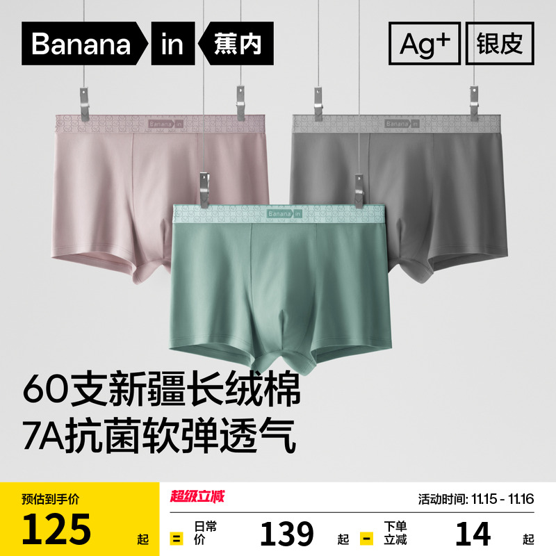 3 pieces|Banana silver leather 300S boxer underwear men's cotton breathable crotch pants boxer shorts boys