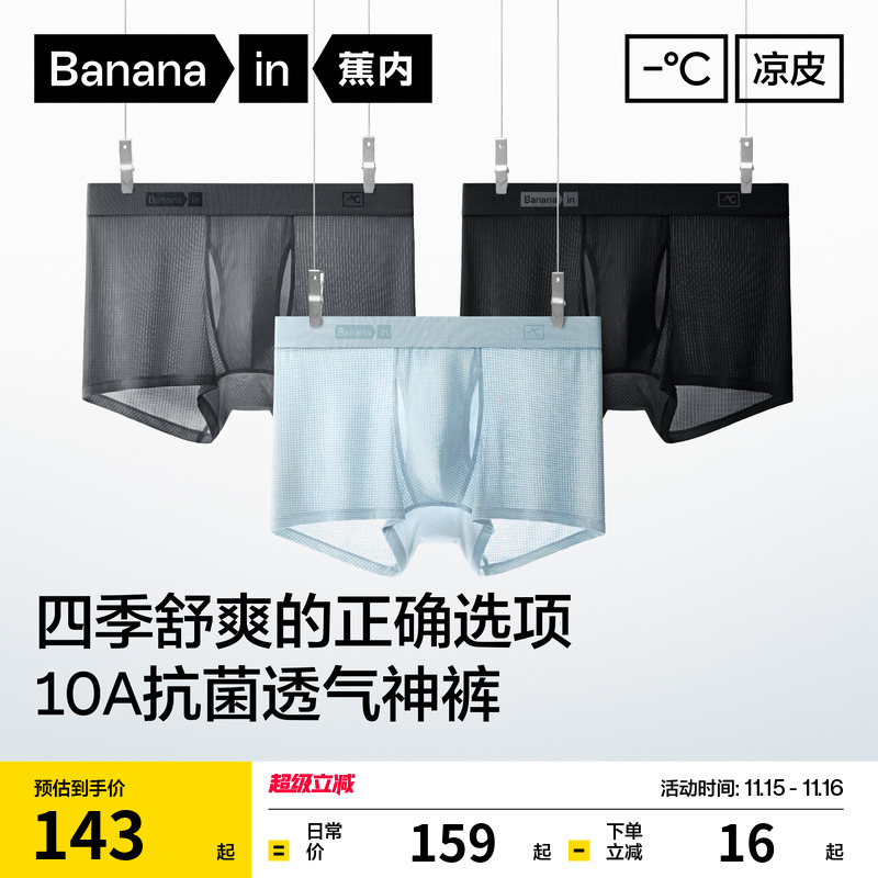3 pieces|Banana cool leather 311CA men's flat angle ice silk underwear modal cotton breathable boxer shorts boys