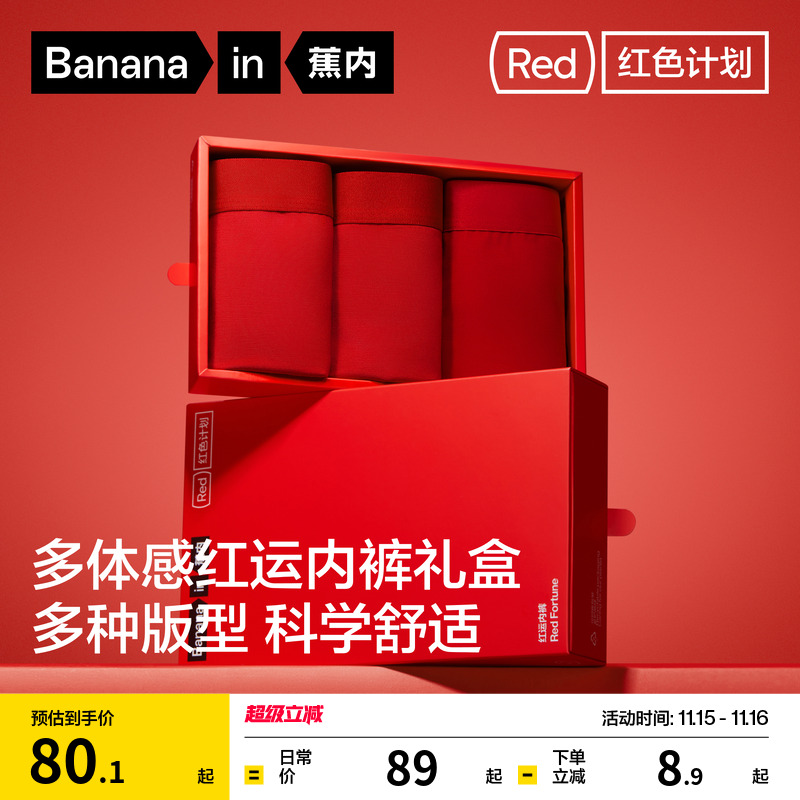Gift box|Banana red plan 3 series men's and women's underwear Modal cotton breathable crotch natal year wedding red underwear
