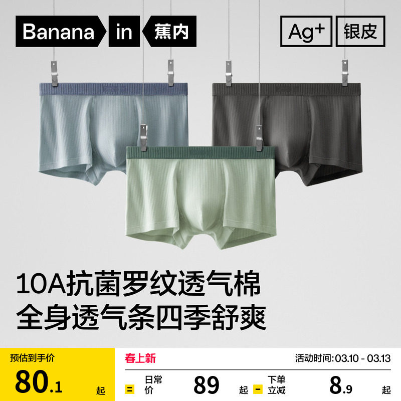 3 pieces|Banana silver leather 311S men's boxer underwear pure cotton breathable crotch teen boxer shorts new boys