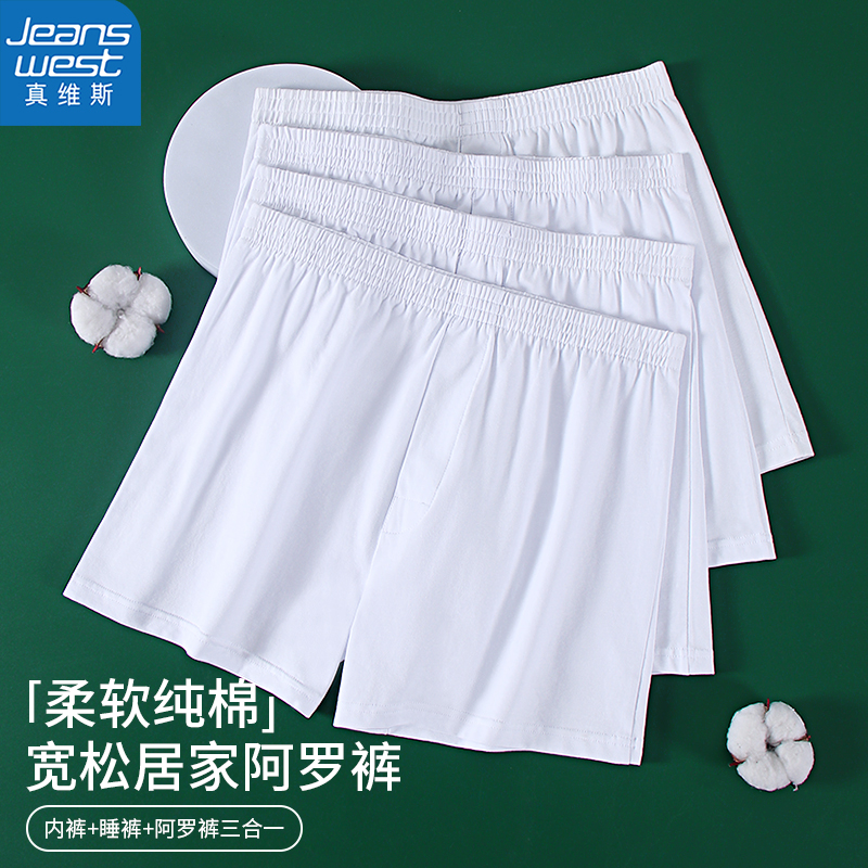 Men's cotton arrow pants, white underwear, men's boxer shorts, fattened and enlarged, loose autumn and winter boxer pajamas