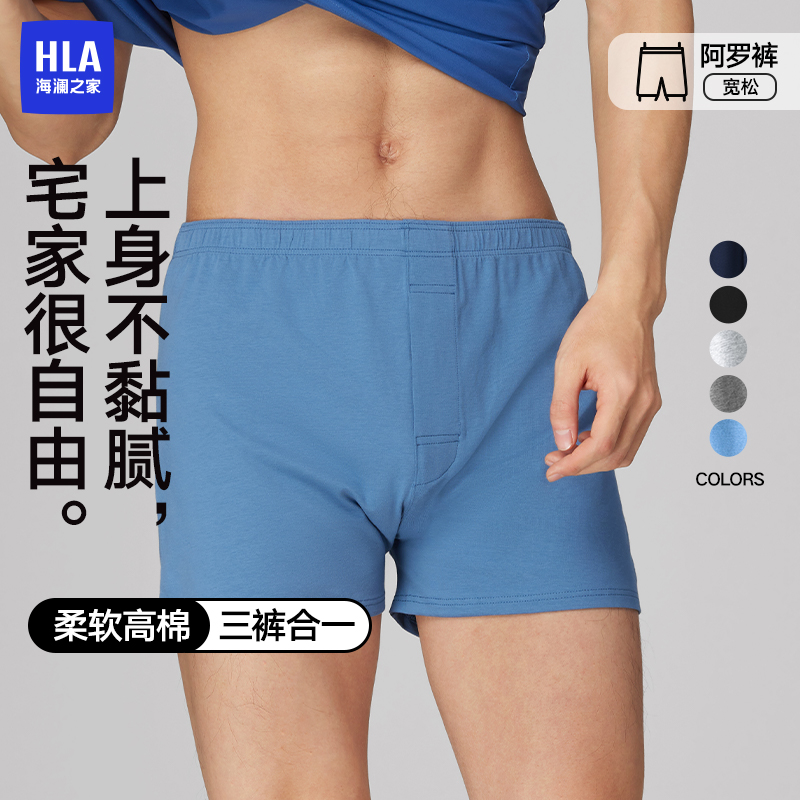 Heilan Home Men's Cotton Arrow Pants Loose, Comfortable, Breathable, High Elasticity, Soft Boxer Panties, Solid Color Men