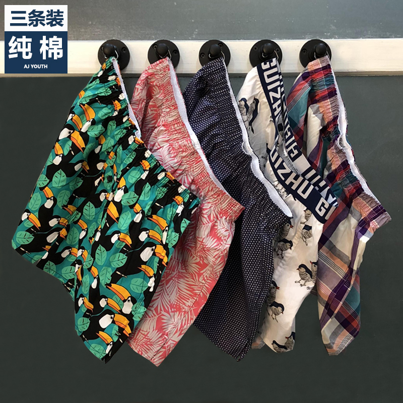 Three pieces of arrow pants, men's pure cotton boxer plus size boxer underwear, home sleeping trousers, toe pants, cotton loose