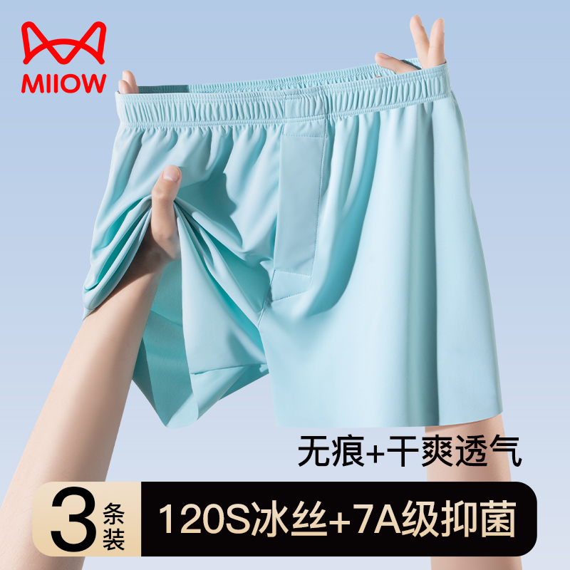 Cat man ice silk arrow pants, men's underwear, men's summer cool boxers, can be worn outside loose plus-size home pajamas