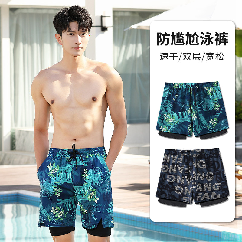 Swimsuit men's quick-drying double-layer anti-embarrassment soaking hot spring loose cropped pants set swimming equipment beach water park