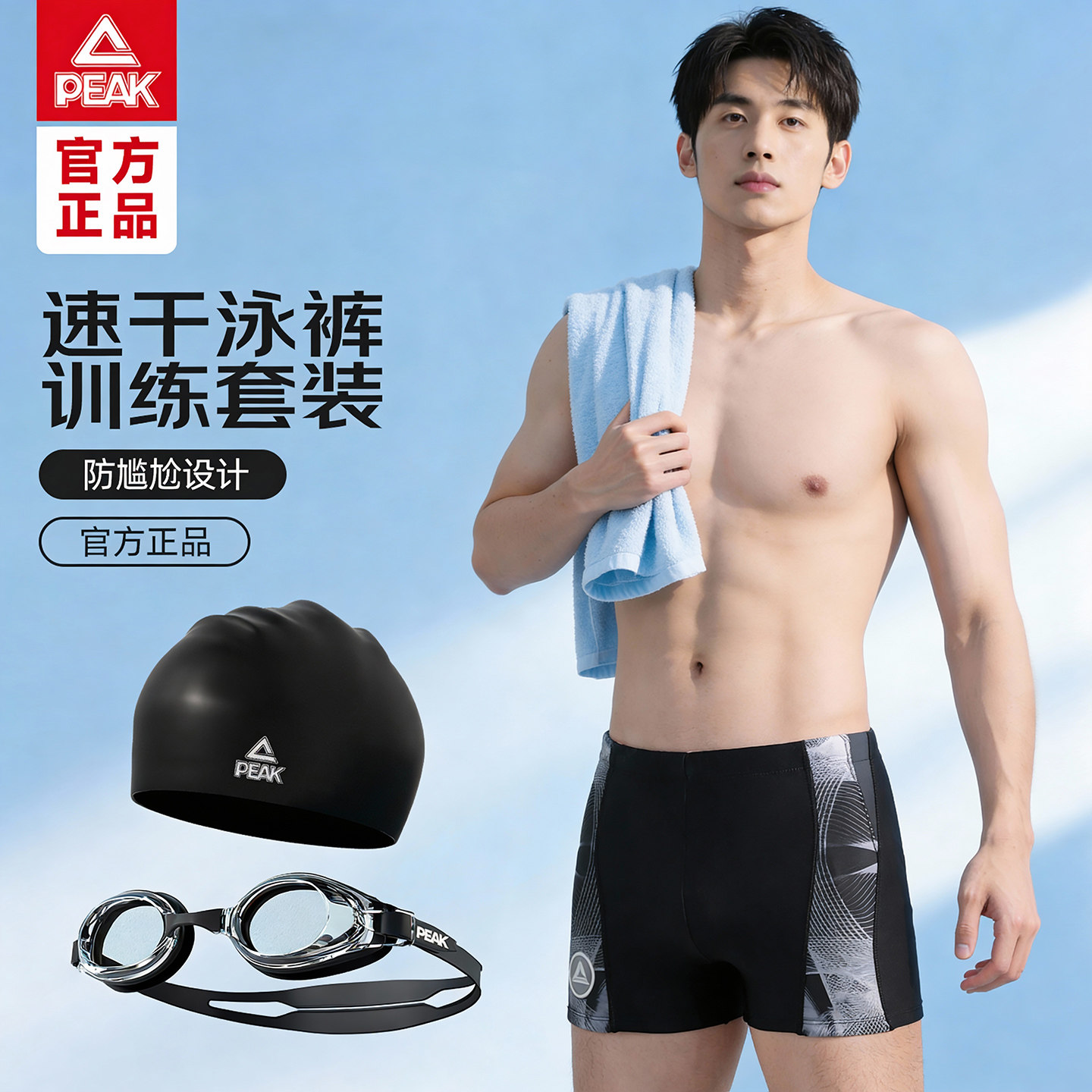 Peak swimming trunks men's adult anti-embarrassment men's swimming trunks swimming goggles swim cap three-piece set of professional swimming equipment