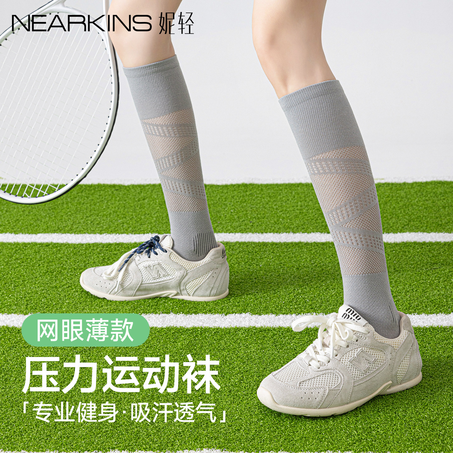 Sports pressure calf socks summer thin badminton professional fitness running skipping rope outdoor gray tennis socks