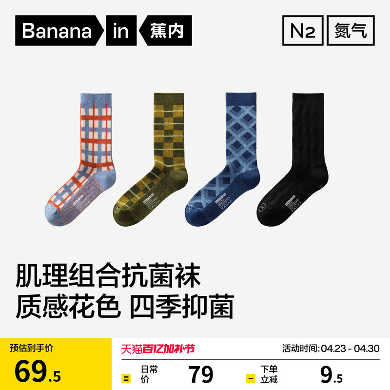 7A antibacterial|Banana silver leather 521S men's and women's color retro stockings flower pattern socks odor-proof sports cotton socks