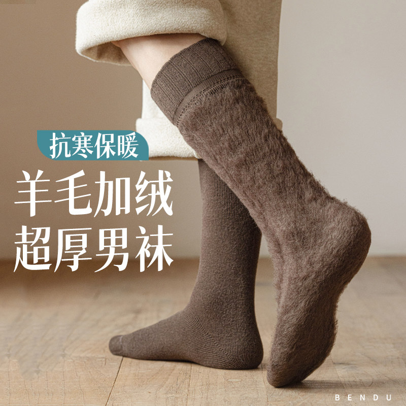 Thickened socks for men in autumn and winter with fleece and cashmere warm towel bottom cotton high calf stockings