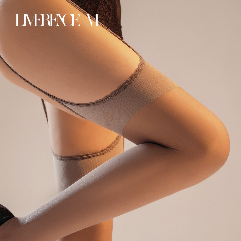 Laimi "Cupid" four-sided crotch lace suspender stockings, thin feminine silky cut-out pantyhose