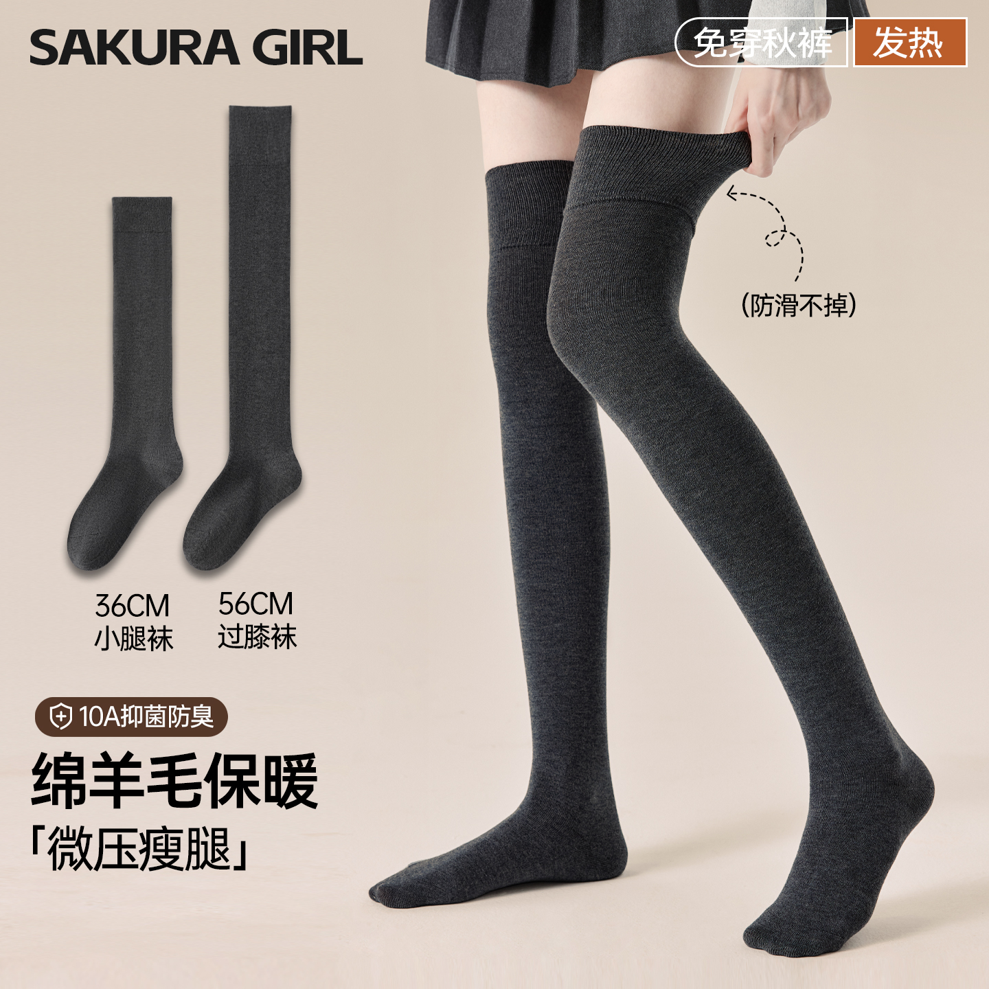 Including wool over the knee socks, women's slightly pressed slimming leg stockings, autumn and winter thickened and warm knee pads, thigh socks, non-slip high top