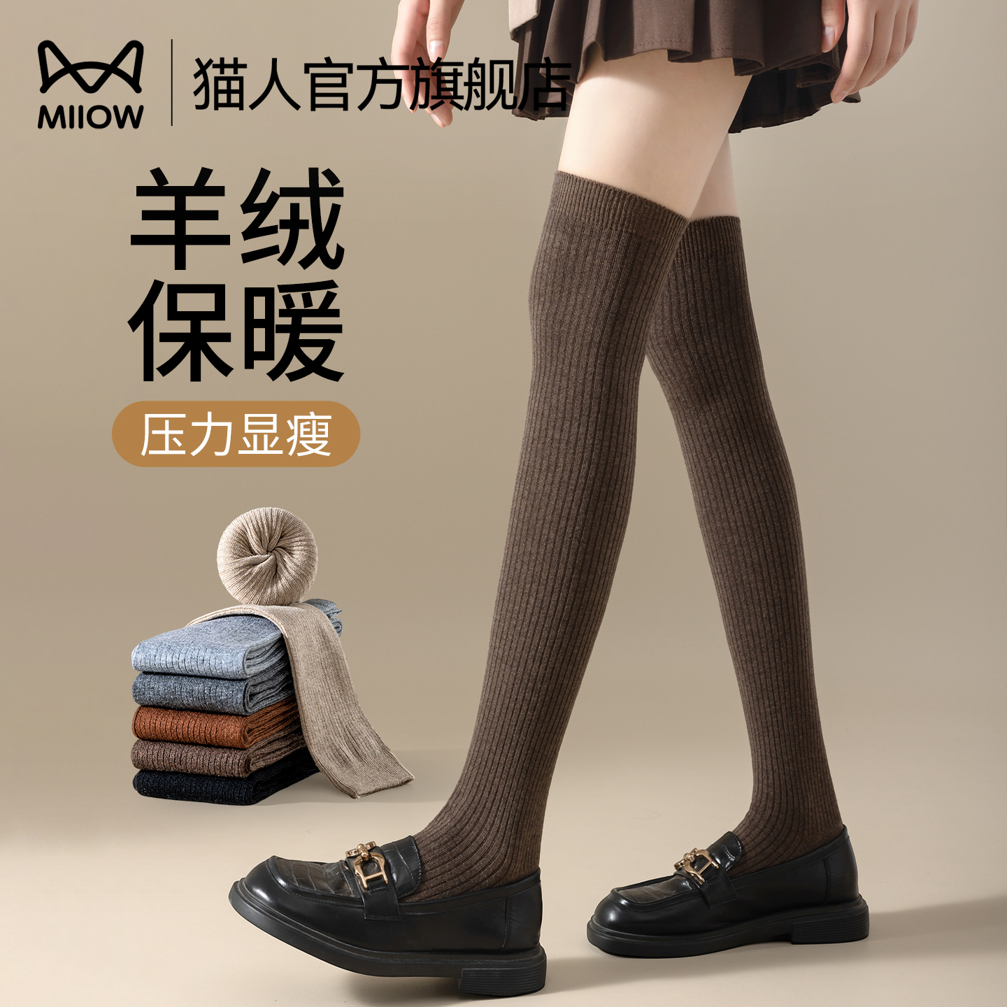 Cat people over the knee wool socks women's autumn and winter anti-slip acrylic heating warm knee socks pressure calf stockings