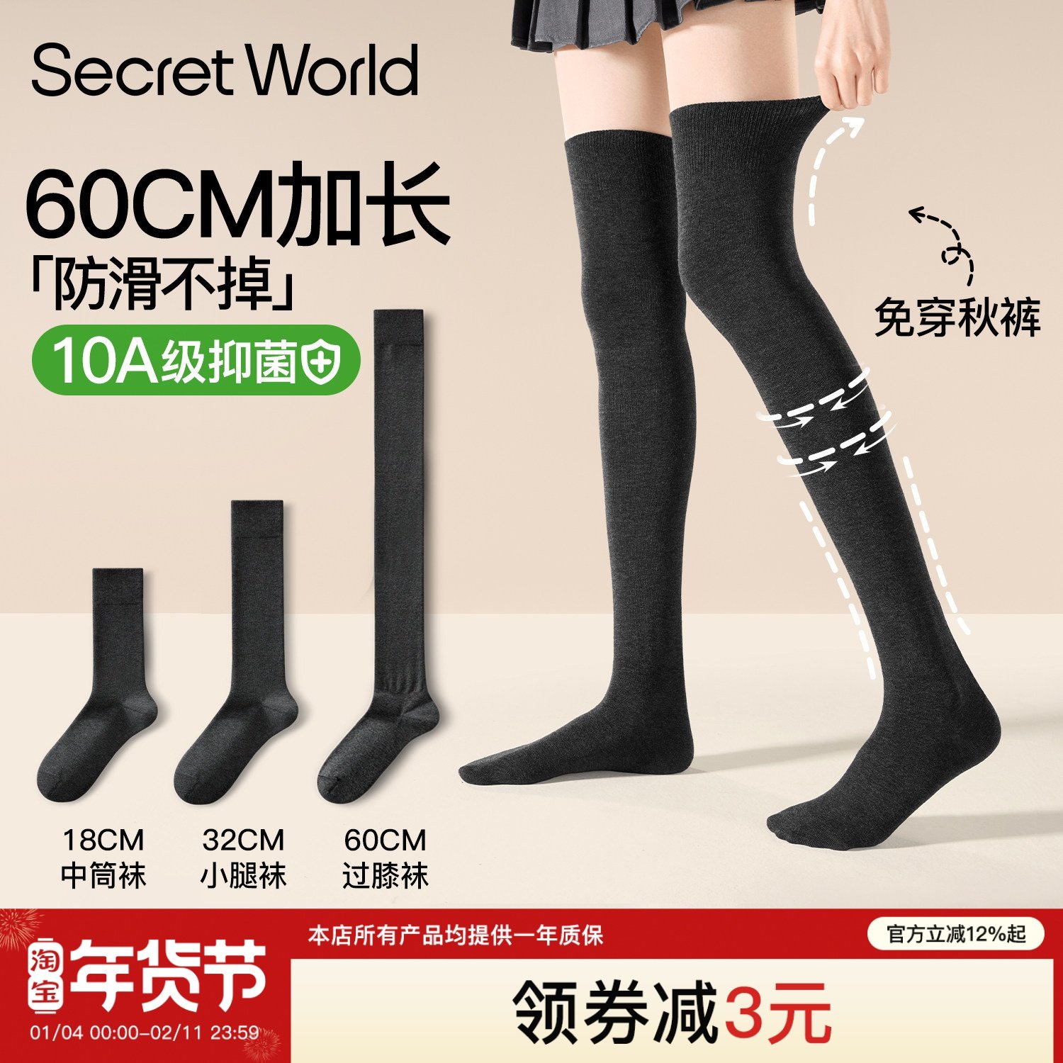 Pure cotton calf socks women's autumn thin high pressure new JK autumn and winter stockings over the knee black mid-leg stockings