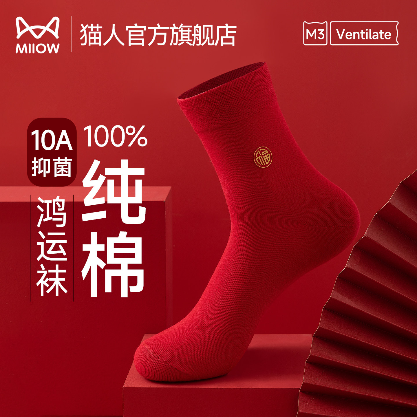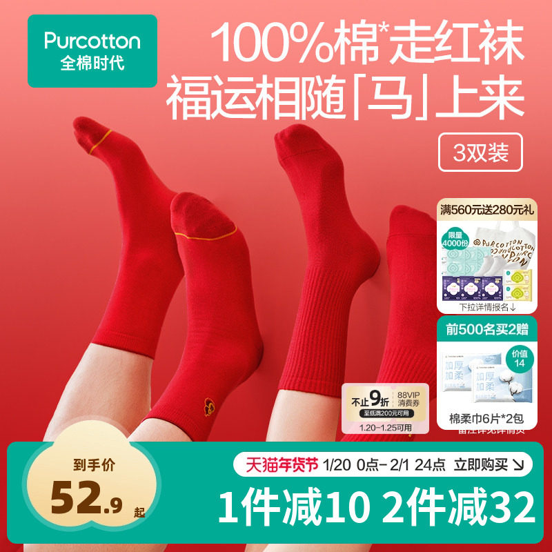 【Happy Luck Socks】Antibacterial stockings for men and women in the cotton era, red socks for the Year of the Horse New Year's gift