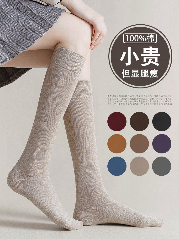 Black cotton calf socks women's autumn and winter new Japanese cotton mid-leg socks high stocking knee socks for women