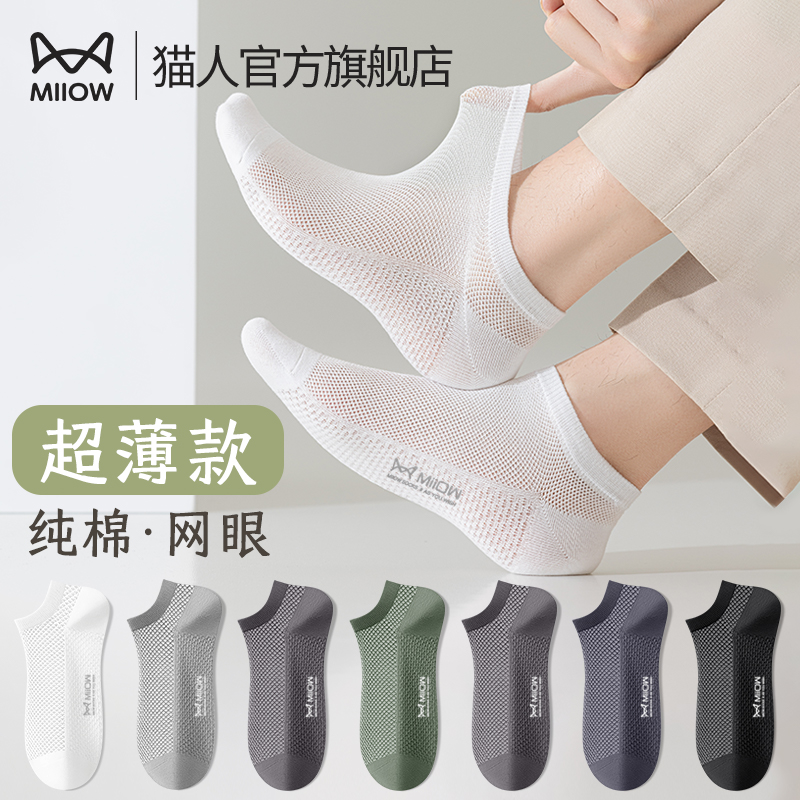 Cat man socks men's summer thin socks 100% cotton anti-odor socks summer ultra-thin full mesh sports boat socks