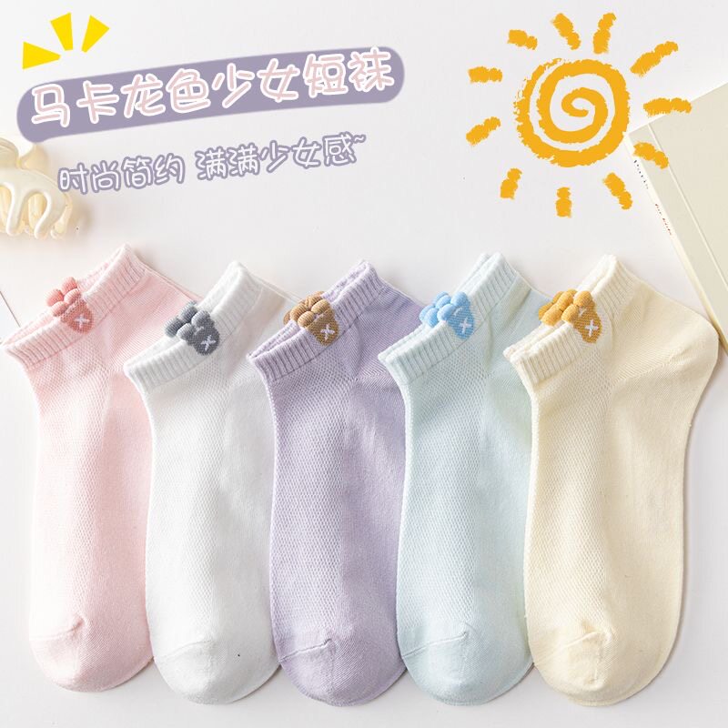 Summer women's mesh socks in five colors with Korean cartoon breathable and versatile thin socks [5 pairs]