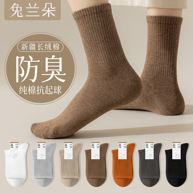 【Zhao Jinmai Same Style】Socks Women's Pure Cotton Autumn and Winter Mid-Leg Socks Antibacterial, Anti-odor, Sweat-Absorbing, Breathable Stacked Socks