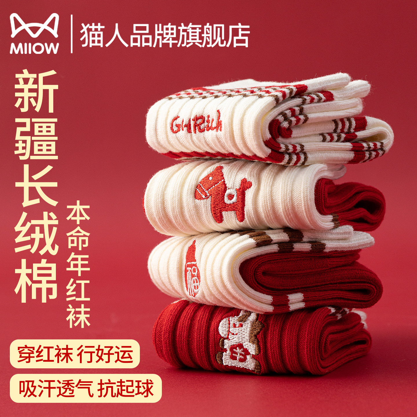 Cat people natal year red socks women's cotton socks autumn and winter long cotton socks New Year's gifts 2026 Year of the Horse