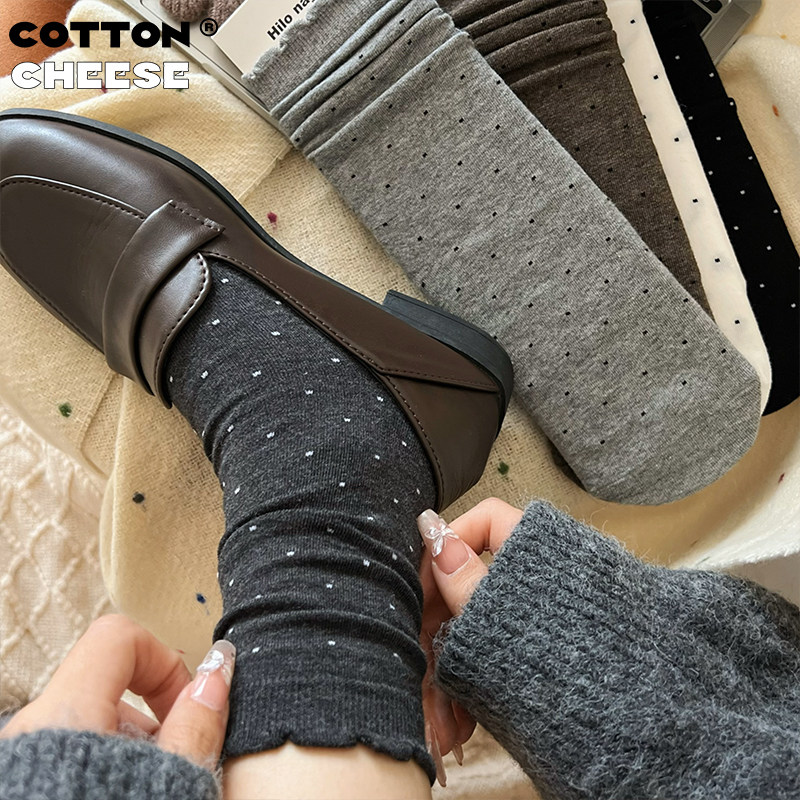 Grey polka dot lace stacked socks women's mid-leg socks ins trendy pure cotton spring and autumn style Japanese JK summer stockings