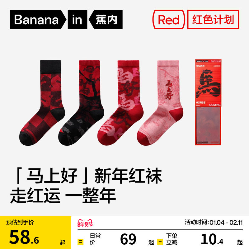 Banana red plan 5 series stockings for men and women couples New Year's socks wedding gift for the natal year of the Horse cotton socks