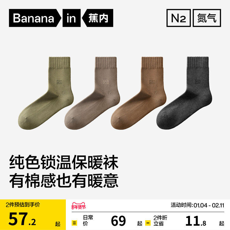 Lock heat and warmth|Banana inner hot leather 3 series mid-tube socks men's heat thickening socks sweat-absorbing and odor-proof terry socks cotton socks winter
