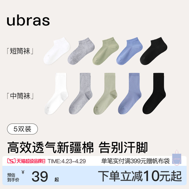 ubras Xinjiang cotton men's mid-leg socks sports socks breathable and sweat-wicking 15A antibacterial anti-odor boat socks cotton socks spring and summer