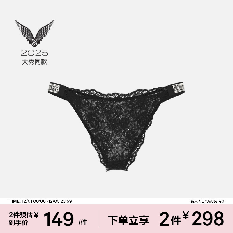 2 pieces 298|2025 Victoria's Secret Show Series Sexy Glitter Diamond Logo Half Hip Low-Rise Panties Women's Autumn