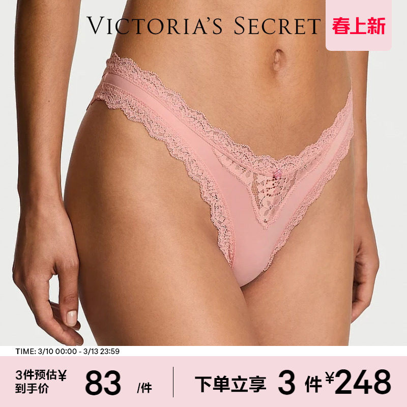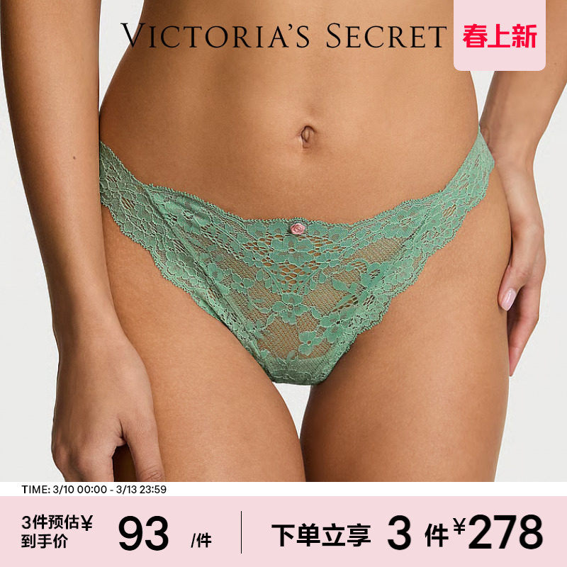 3 pieces 278|Victoria's Secret sexy lace low-rise non-hip-covering thong underwear women's 2026 spring