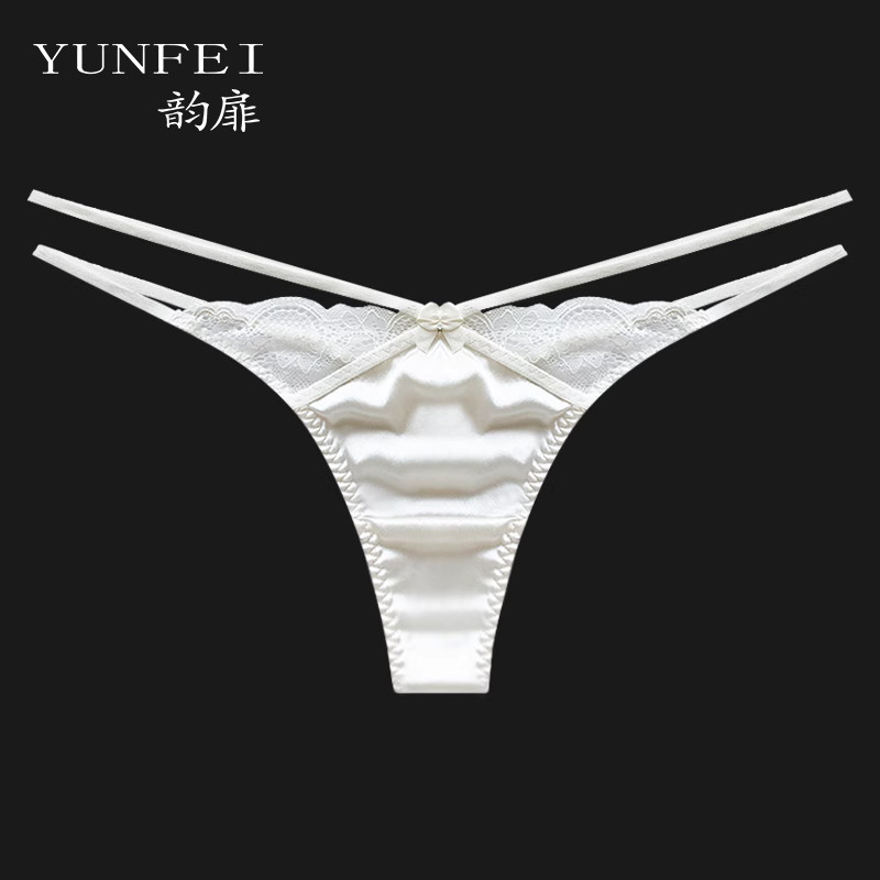 Rhyme silk thong women's inner lace low-rise sexy silk T-pants ultra-thin French daily panties