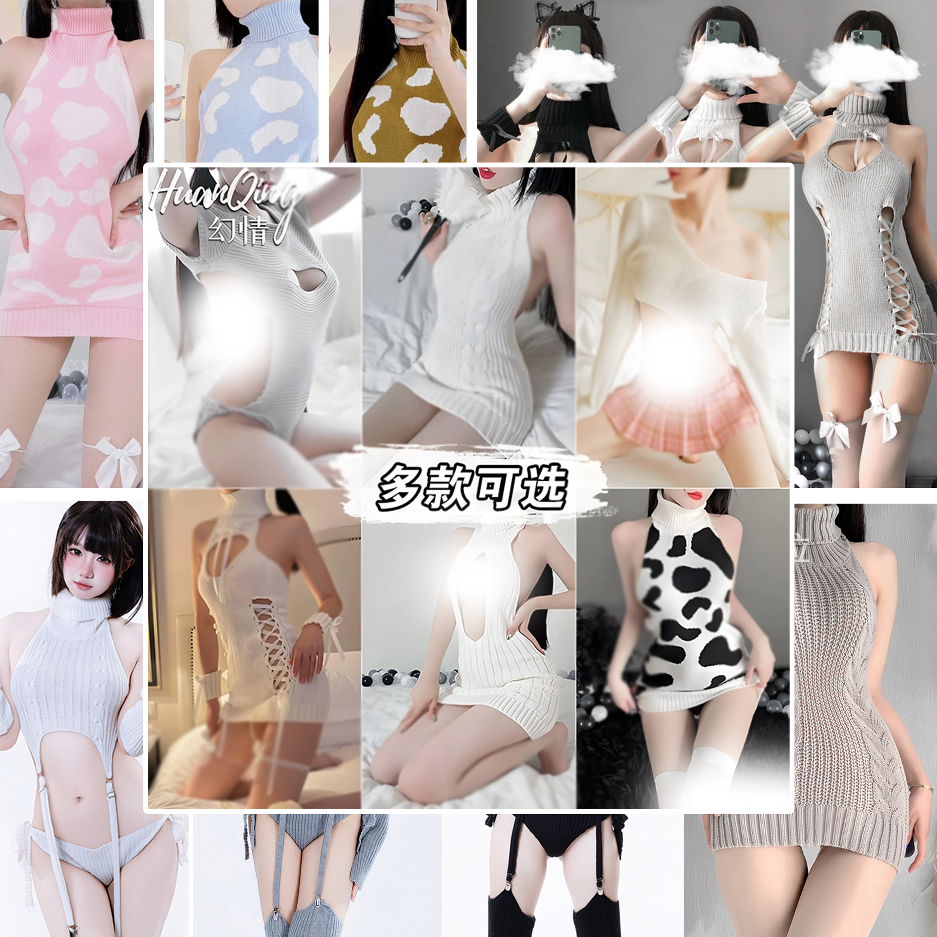 Dirty Meow Society Japanese sexy turtleneck backless sweater two-dimensional tight knit dress hip-hugging skirt female pseudo-girl