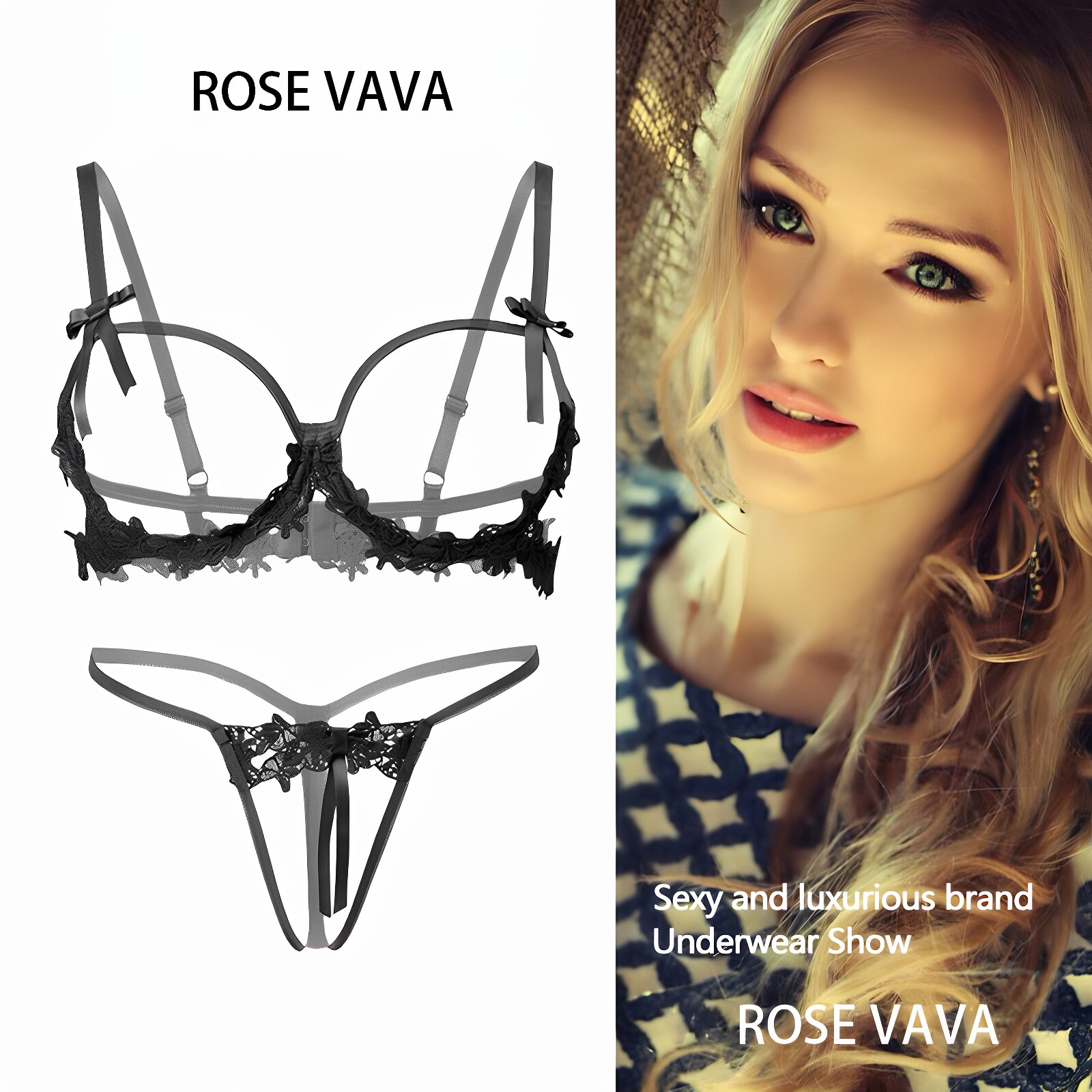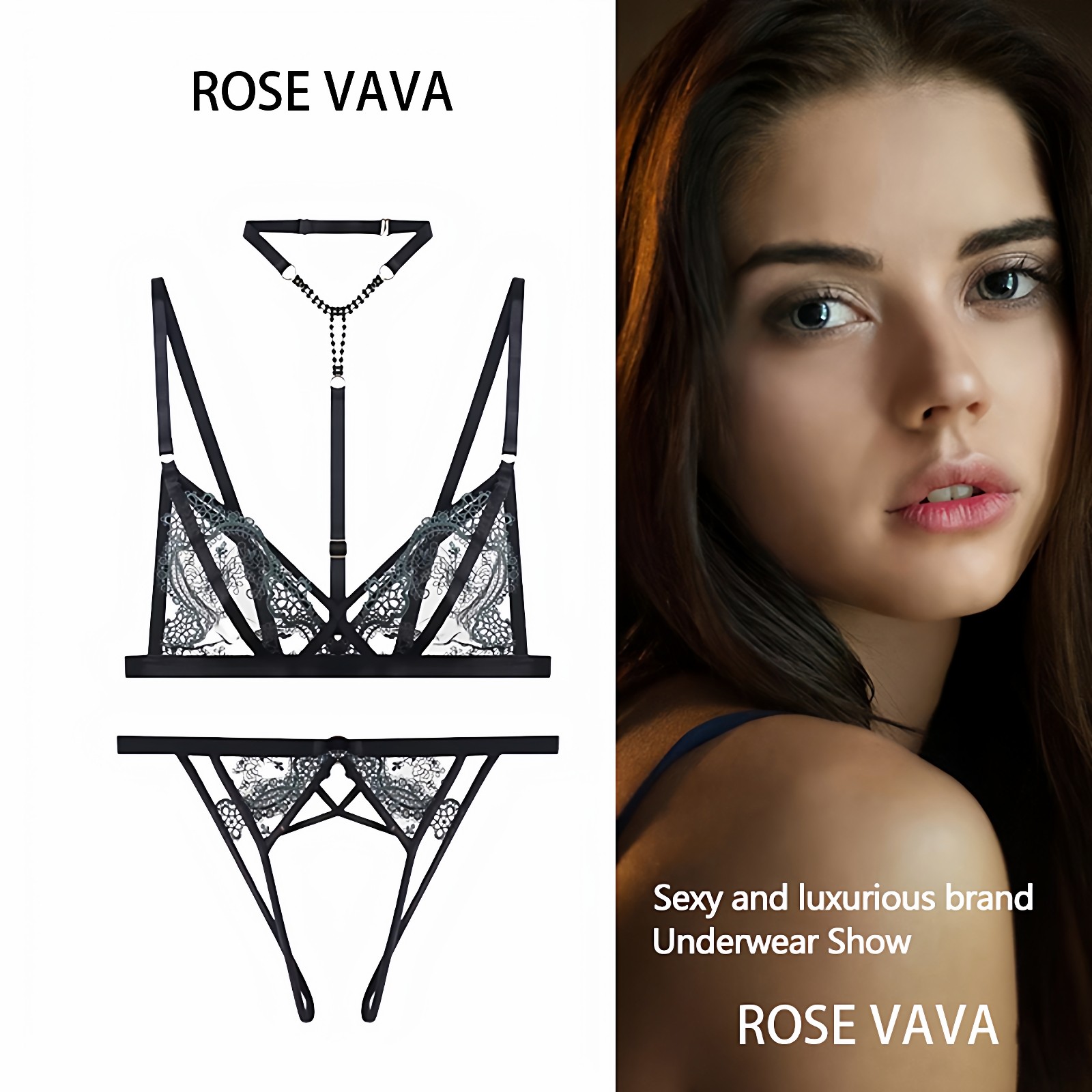ROSE VAVA pure desire lace sexy ultra-thin underwire hollow bra set