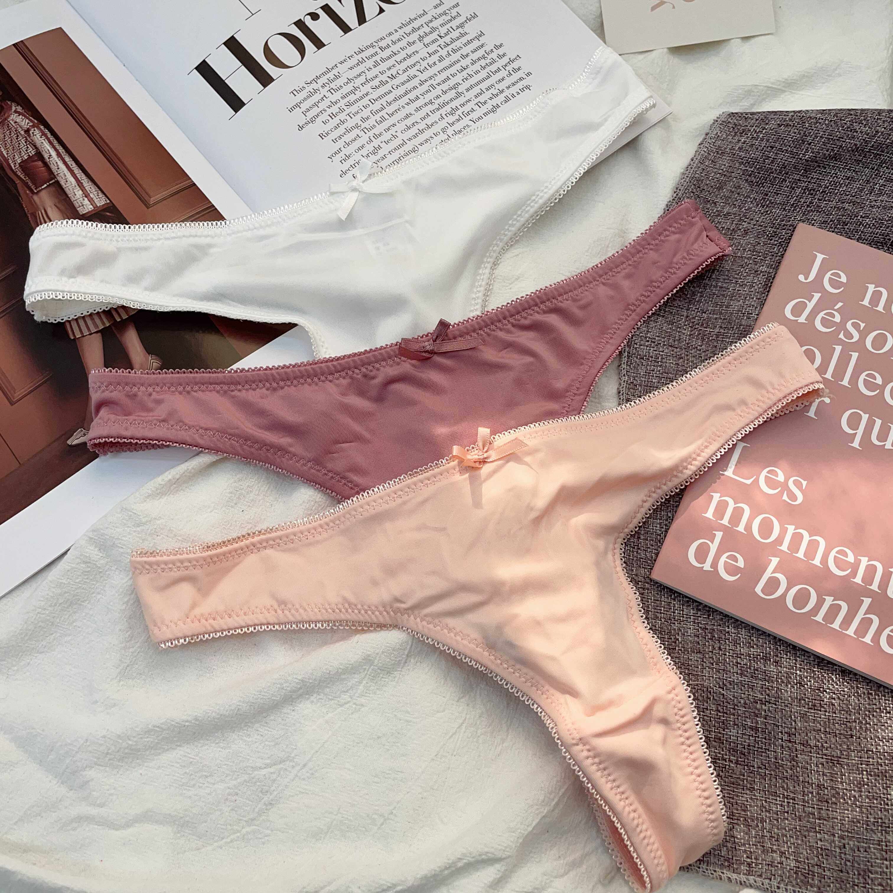 Simple and comfortable thong women's ultra-thin breathable girl's underwear low-rise solid color European and American thin T-pants two-piece combination