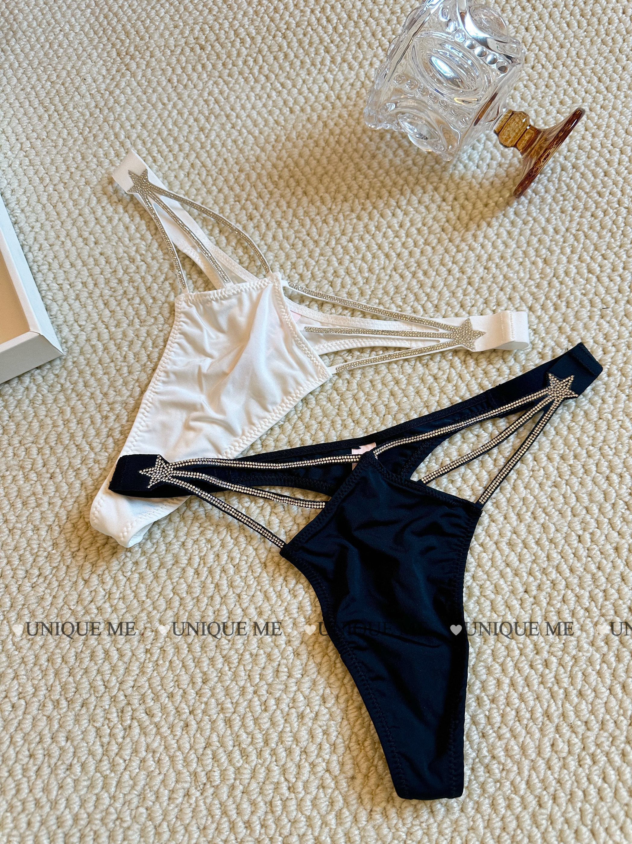 Weijia Replacement ~ Flash Diamond Sexy High-end Light Luxury Hollow Solid Color Women's Thong Summer New Thin Band Panties