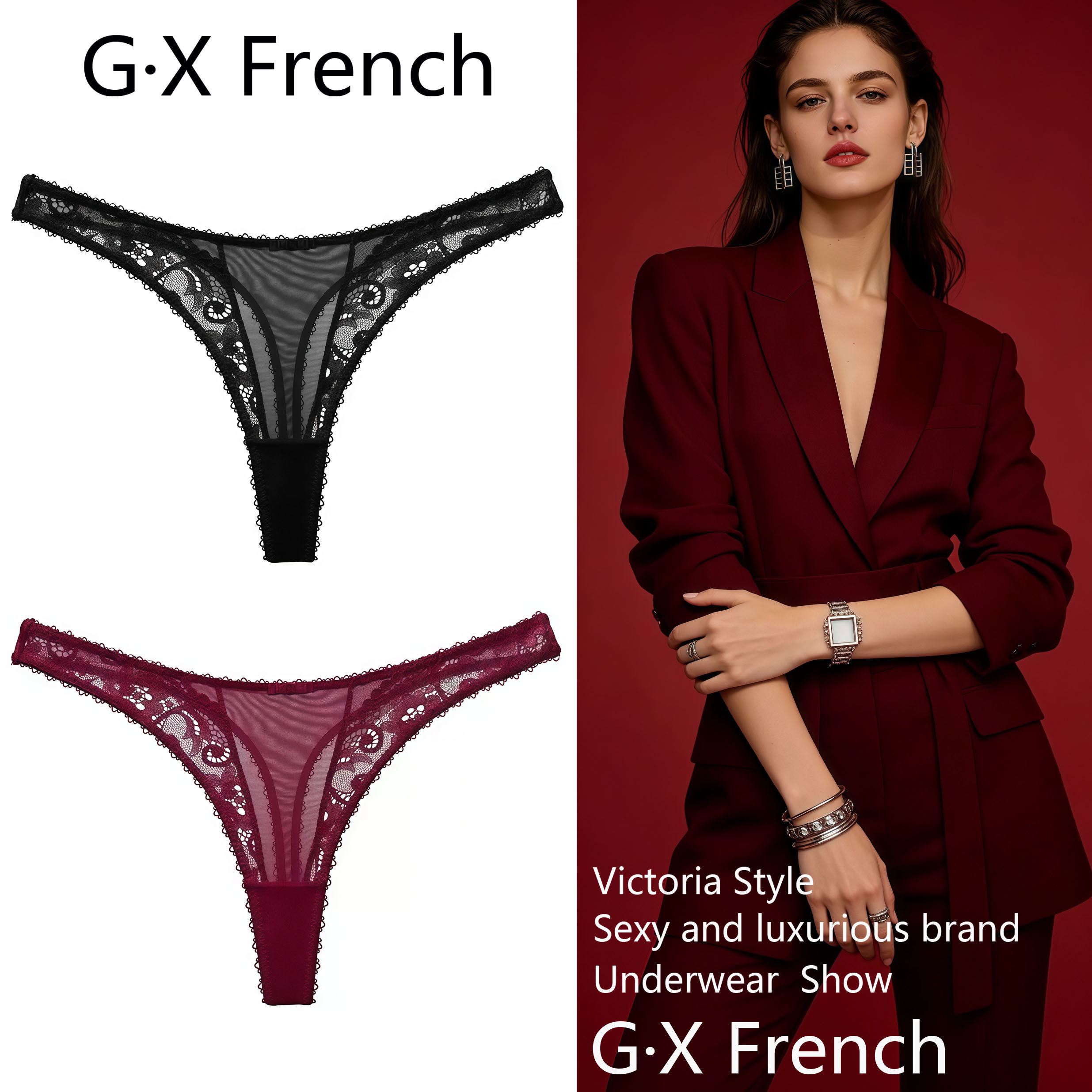 3 pieces 248|Victoria's Secret sexy light mesh floral lace V-line fashionable low-rise thong underwear women's 26 spring