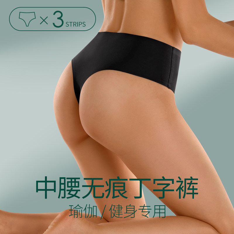Yoga thong women's inner mid-rise seamless sports fitness invisible European and American sexy new T-line pants 200 pounds plus size