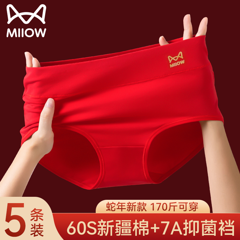 Cat Man Red Panties Women's Pure Cotton 7A Grade Antibacterial Full Cotton Crotch 2025 New Mid-Rise Women's Breathable Triangle Shorts