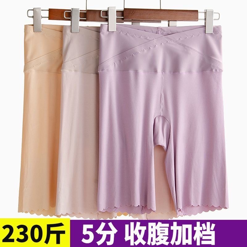Cat man ice silk non-marking safety pants anti-naked women tighten their abdomen and lift their buttocks in summer, thin two-in-one non-curled edges and bottom