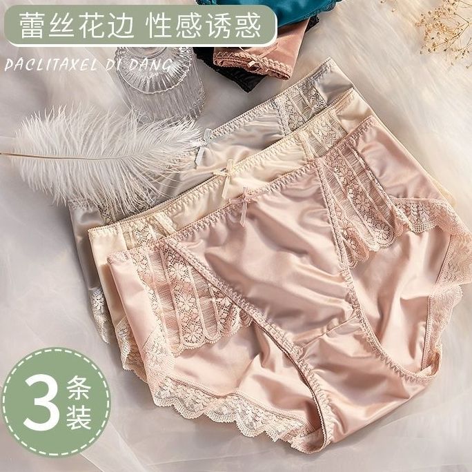 High-end women's underwear lace sexy ice silk thin cool mid-high waist charming light luxury new summer comfortable carved women