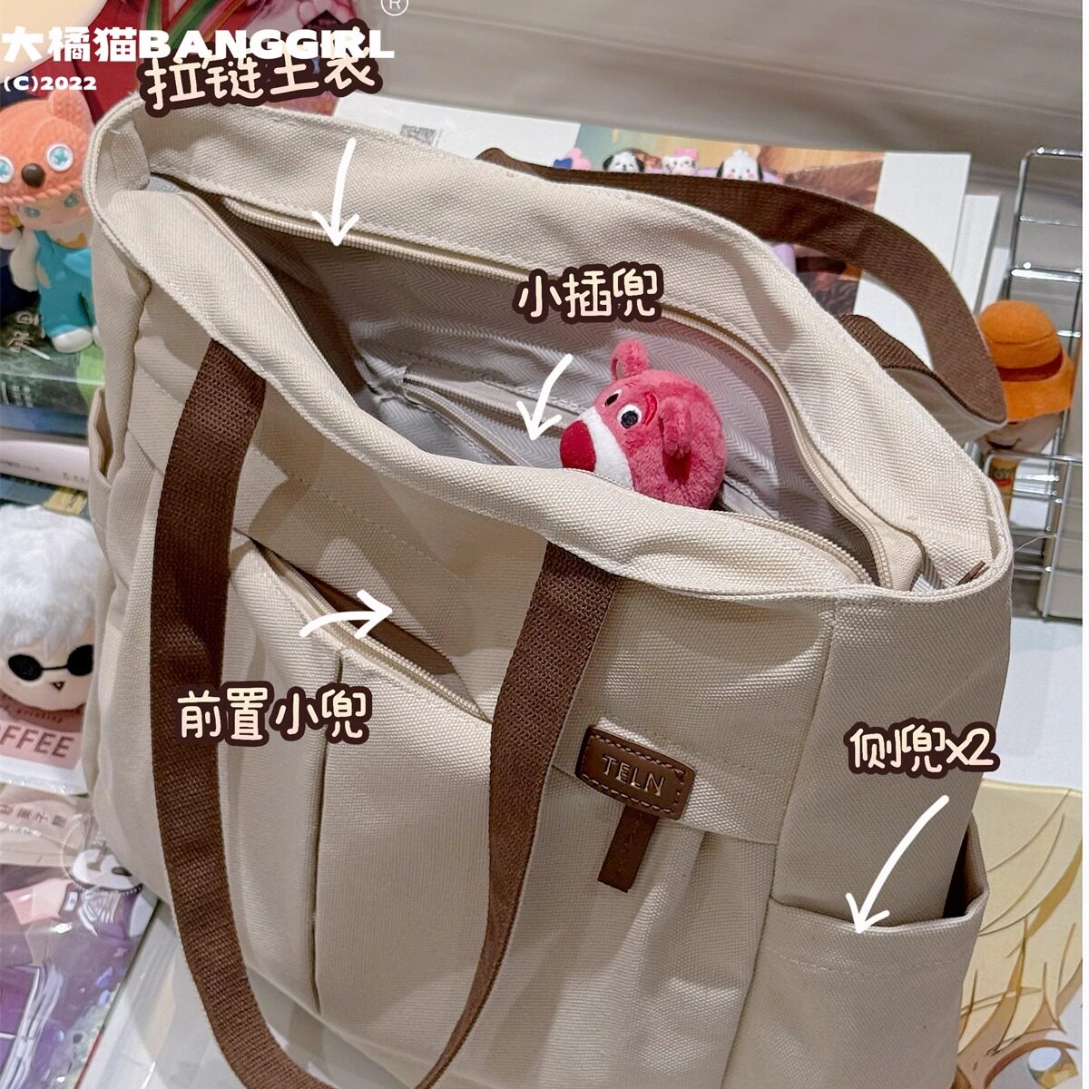 2025 New Trendy Simple Multi-Compartment Canvas Bag Women's Large-Capacity Portable Crossbody Commuter Tote Bag is Lightweight and Practical