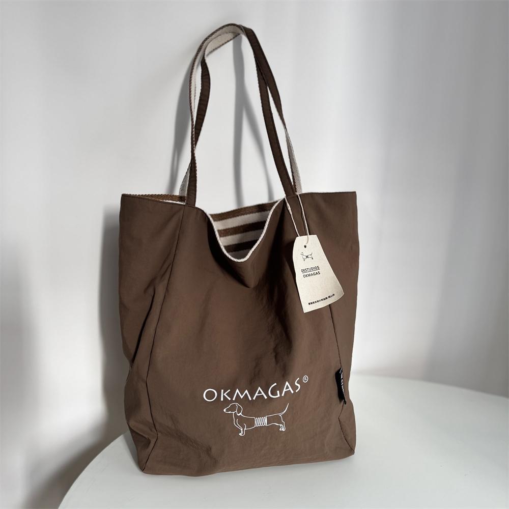 OK original design coffee color stripe AB side tote canvas bag Maillard men's and women's dachshund large capacity canvas bag