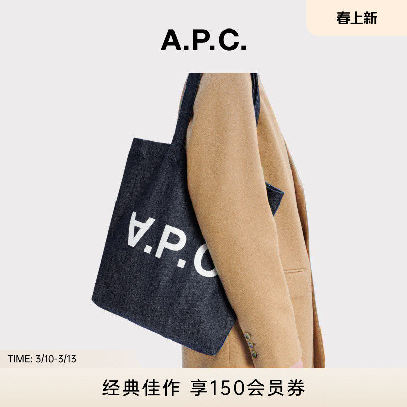 【Brand Classic】A.P.C.TOTE Unisex Commuter Large Capacity Alphabet Denim Tote Bag