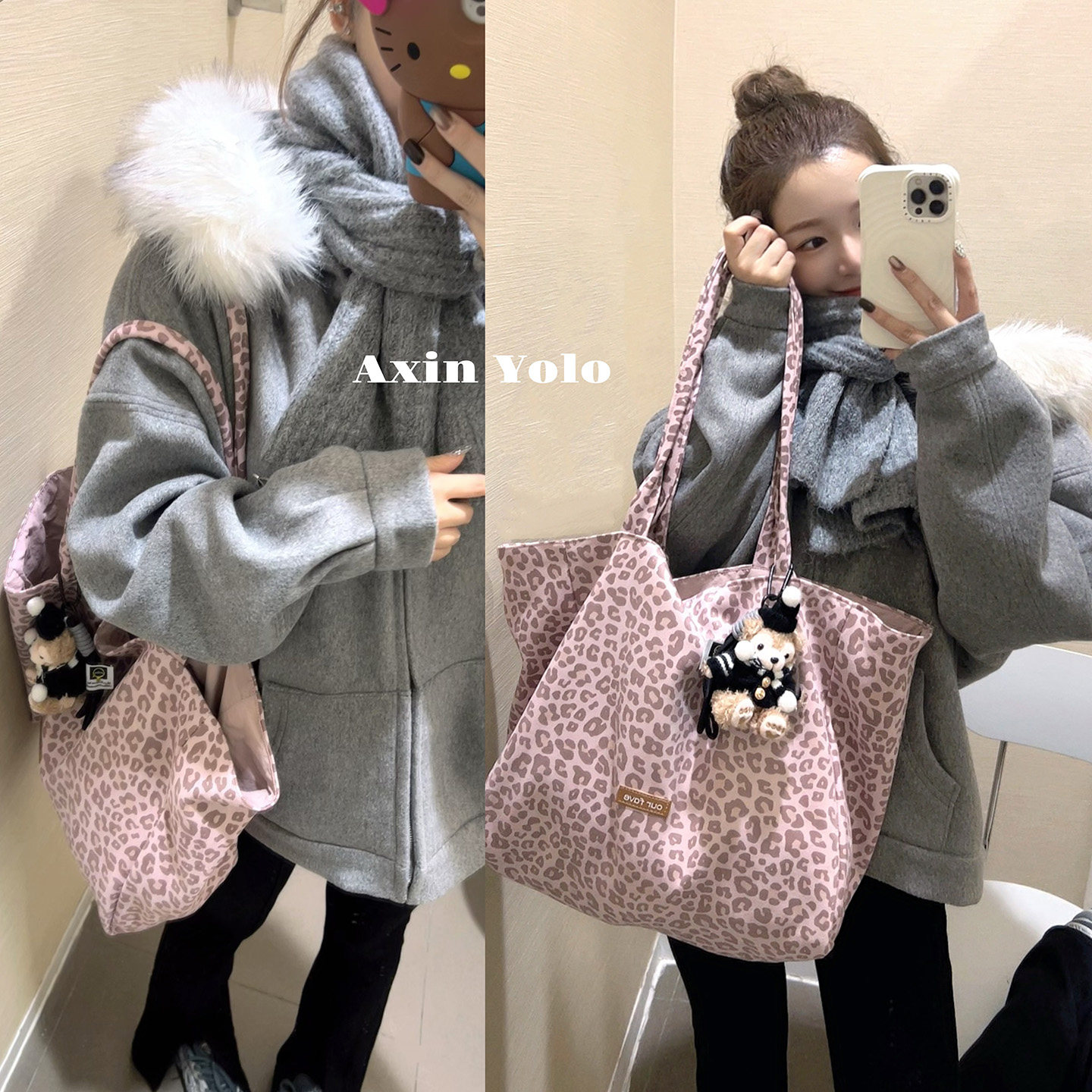 2025 Fall/Winter New Leopard Print Canvas Bag Women's Large Capacity Shoulder Bag Commuting Versatile Lazy Style Tote Bag