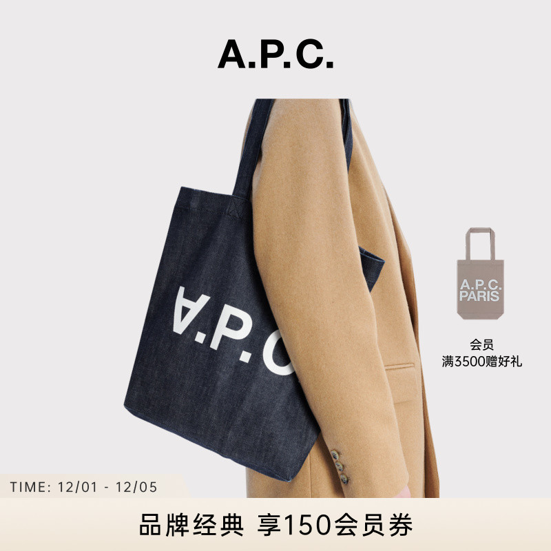 【Brand Classic】A.P.C.TOTE Unisex Commuter Large Capacity Alphabet Denim Tote Bag