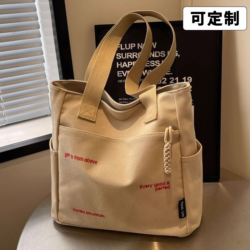 High-value canvas bag, large capacity shoulder bag, women's commuter bag, independent compartment canvas handbag, work meal bag