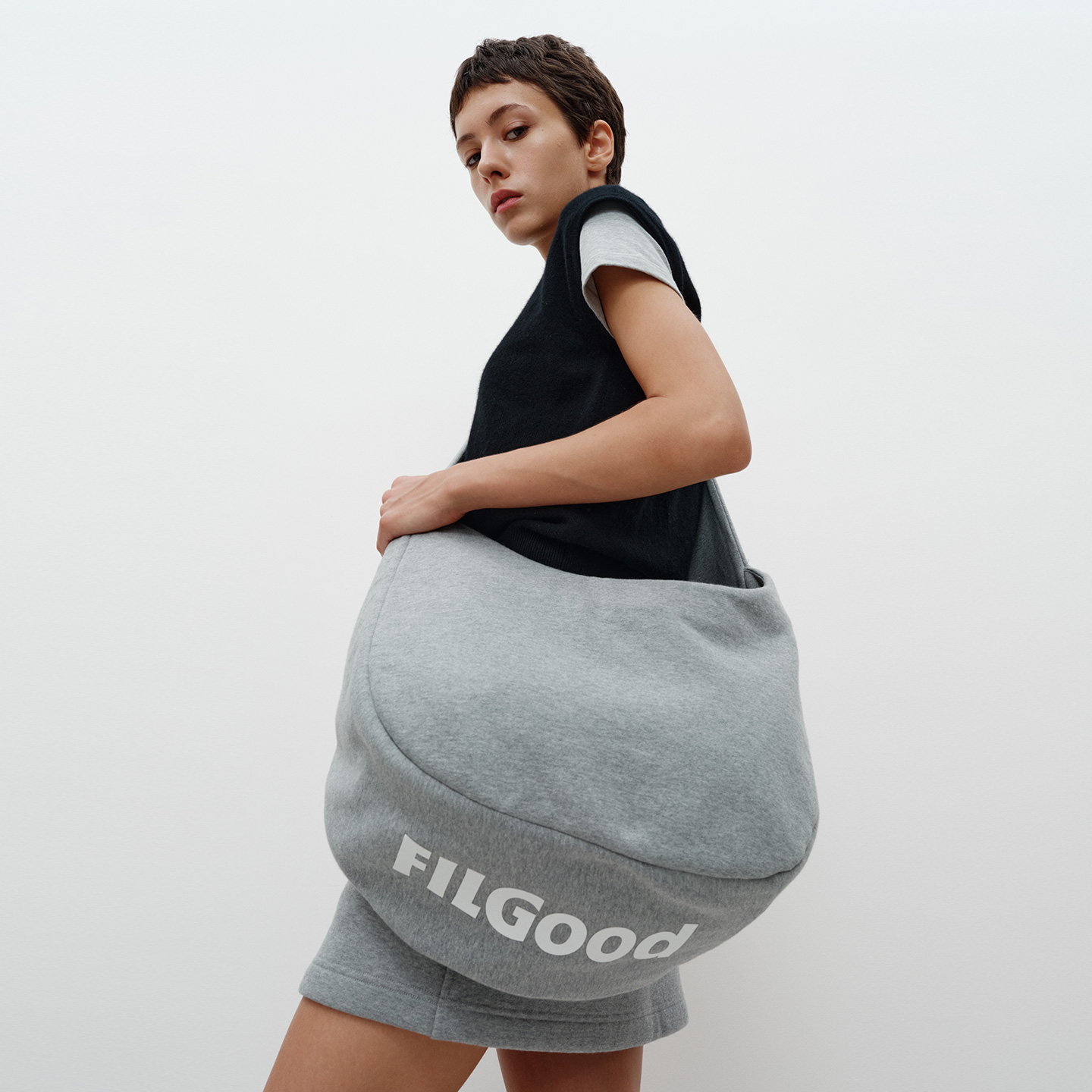FILGood's new cross-body knitted bag asymmetrical shape Large logo design at the bottom FG02AC02/3